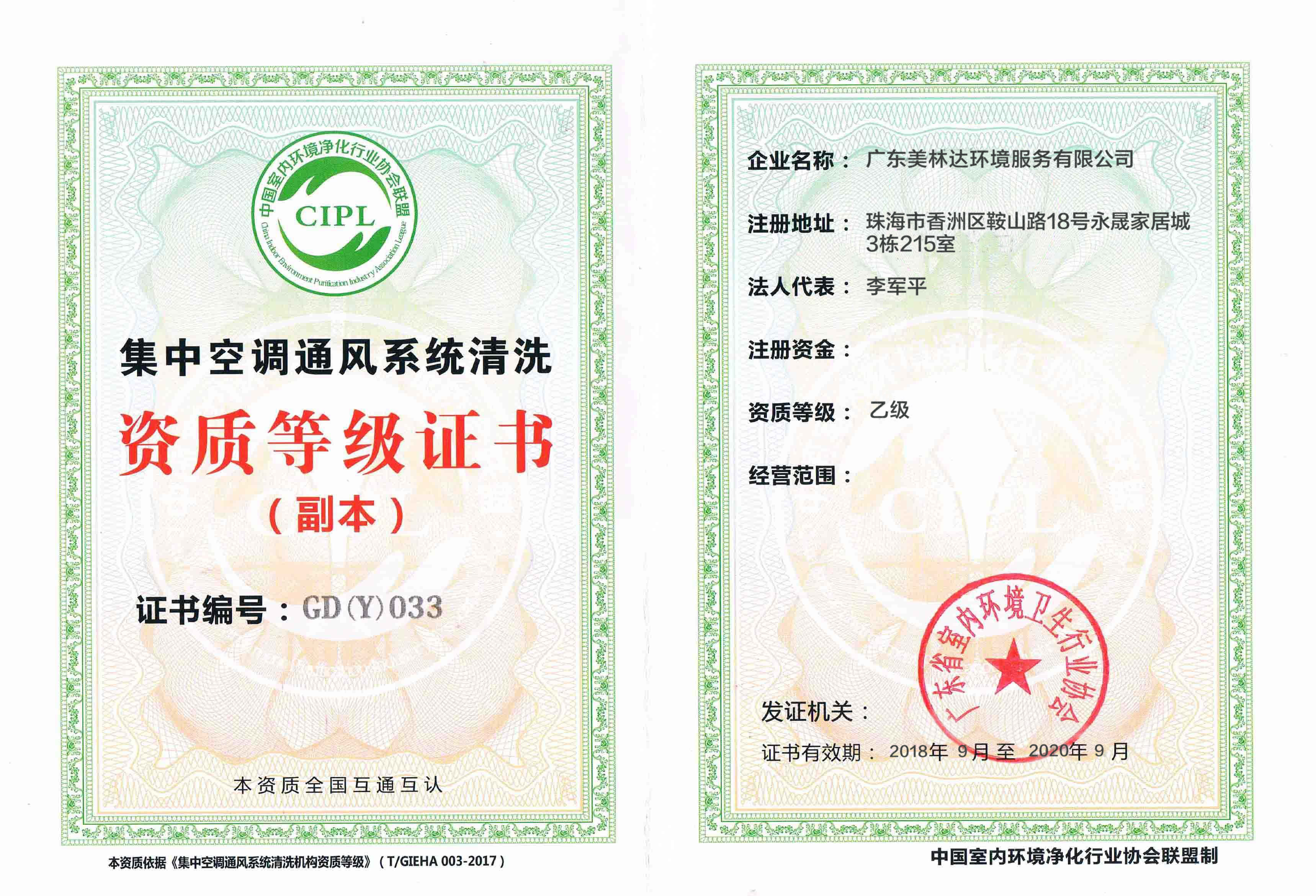 通風(fēng)空調(diào)系統(tǒng)清洗資質(zhì)證書