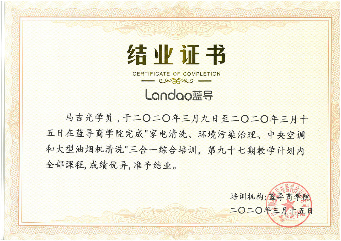 水系統(tǒng)、家電清洗培訓(xùn)證書